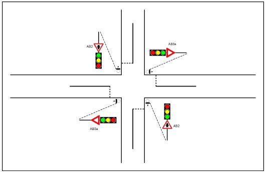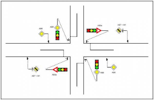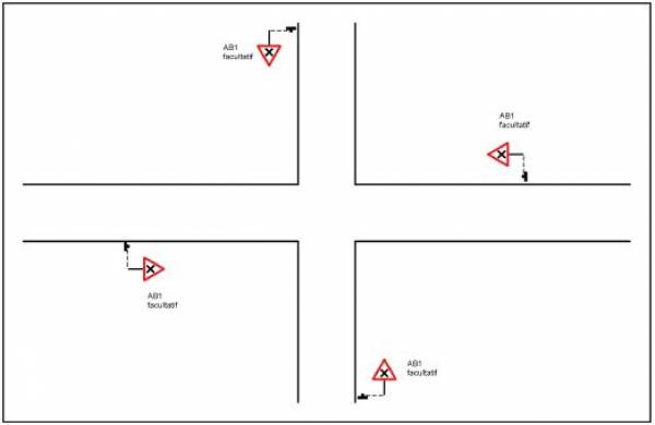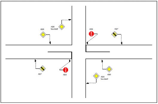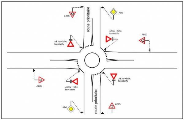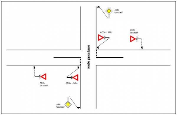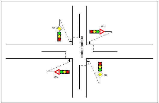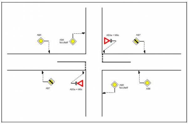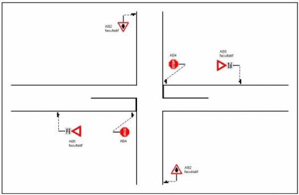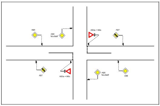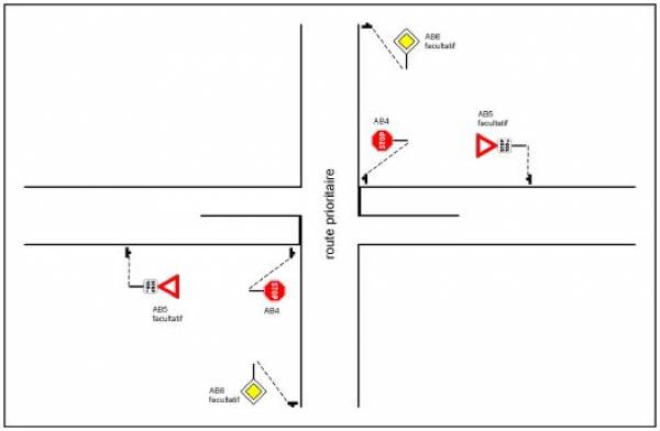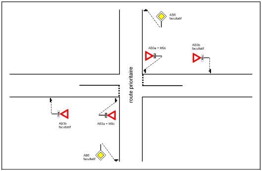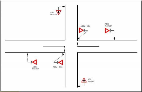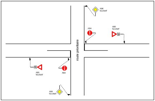 (Seuls la signalisation de priorité et le marquage nécessaire à la compréhension figurent sur les schémas suivants)