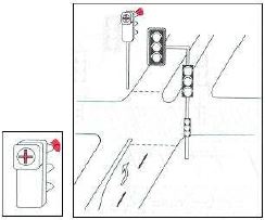 5) L’utilisation de signaux R11v dont le feu rouge est répété à l’arrière en forme de croix rouge grecque, est conseillée chaque fois que cette répétition peut aider les véhicules provenant de l’entrée adverse à s’écouler en tourne-à-gauche. Sur une branche de carrefour où les différents mouvements directionnels ou modaux sont dissociés il faut veiller toutefois à ne pas donner une fausse impression de sécurité ou un faux sentiment de priorité aux conducteurs tournant à gauche.