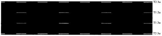 Lorsque deux voies sont affectées à un sens de circulation, la ligne continue séparant les sens de circulation opposés et la ligne d’annonce de type T3 qui la précède ont une largeur de 3u.