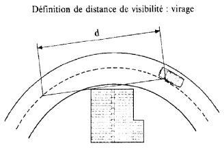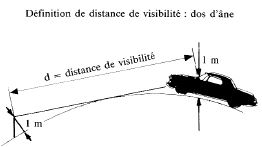 La distance de visibilité est définie de manière précise comme la distance à laquelle un objet placé sur l'axe de la route à 1 m au-dessus de la chaussée peut être aperçu par un observateur placé sur l'axe de la route et dont l’œil est à 1 m au-dessus de la chaussée.