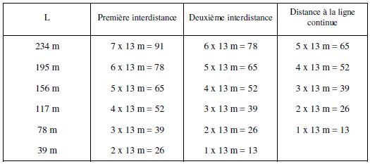Les interdistances entre flèches sont décroissantes comme indiqué dans le tableau ci-dessous :