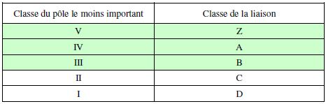 Les critères de classement des liaisons sont définis dans le tableau ci-après :