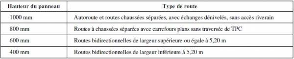Le choix du modèle normal ou du petit modèle est fonction du type de la route et de l’espace disponible. Le modèle normal est employé de préférence. Le petit modèle peut être utilisé si l'on rencontre des difficultés d'implantation.