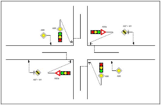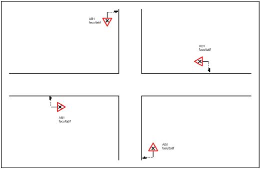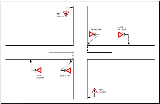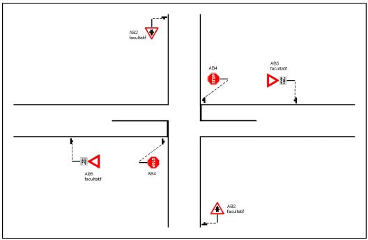 (Seuls la signalisation de priorité et le marquage nécessaire à la compréhension figurent sur les schémas suivants)
