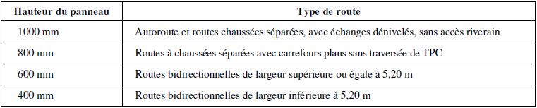 Le choix du modèle normal ou du petit modèle est fonction du type de la route et de l’espace disponible. Le modèle normal est employé de préférence. Le petit modèle peut être utilisé si l'on rencontre des difficultés d'implantation.